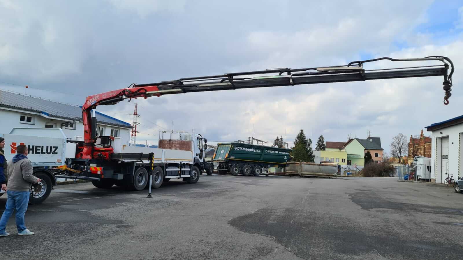 Nákladní automobil s hydraulickou rukou a vlekem
